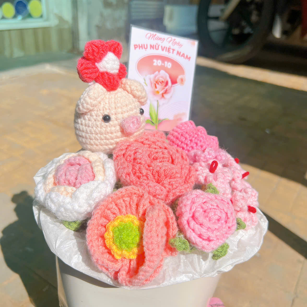 Bó Hoa Tròn Heo Hoa Hồng