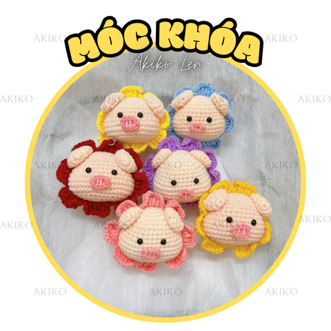 Móc Khóa Con Heo Viền Hoa